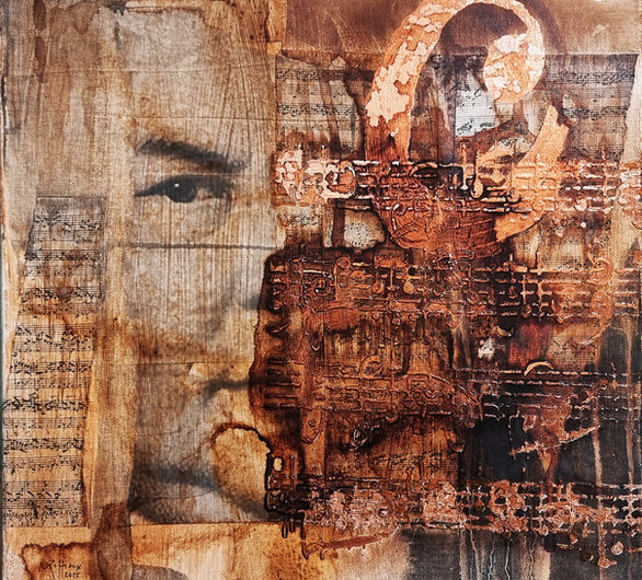 Chaque œuvre est réalisée dans un format symbolique de 40 x 40 cm, comme un clin d’œil à ces quatre décennies de chemin artistique. Ces tableaux mêlent collages de documents liés à Bach – portraits, manuscrits – et rehauts de peinture acrylique. Ils composent une série d’un même esprit, mais chacun porte une singularité, une variation personnelle autour du maître de Leipzig.